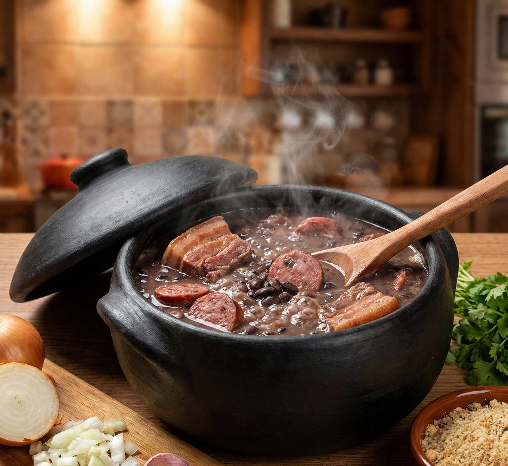 Este kit reúne itens essenciais para quem deseja uma composição completa para preparo e serviço das refeições. Ele é formado por três panelas de barro, seis pratos, uma travessa e duas cumbucas, oferecendo praticidade e versatilidade para diferentes momentos do dia a dia.